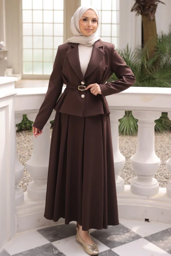 Çağla Önü Nervürlü Fermuarlı Ceket Etekli Takım