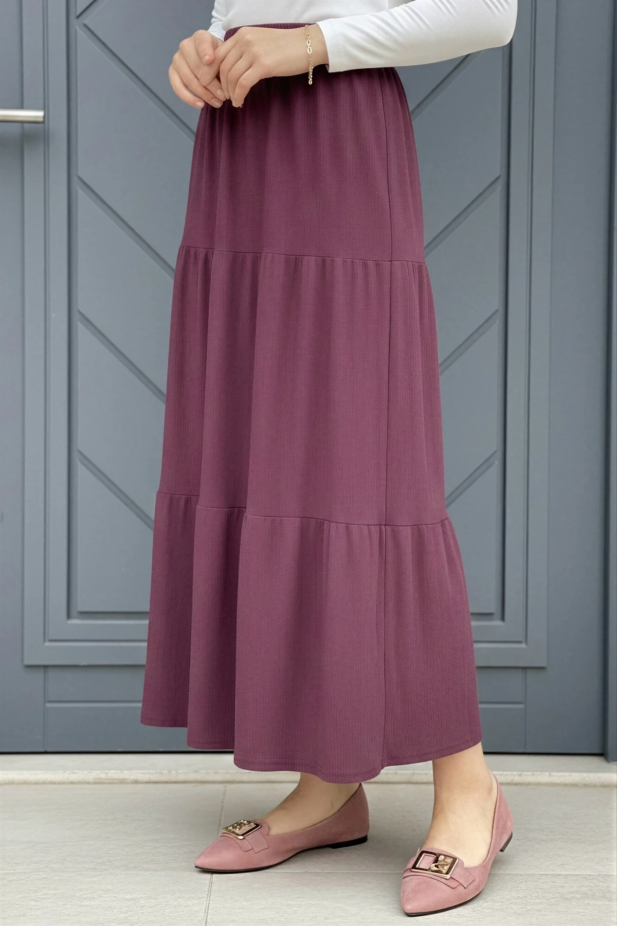 Mor Eteği Katlı Bel Lastikli Bürümcük Etek