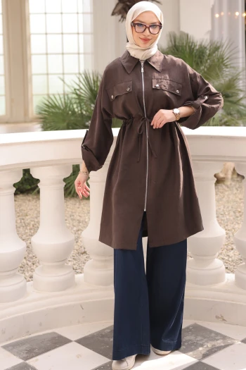 Acı Kahve Bel Kuşaklı Çift Cepli Gabria Kap