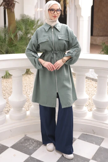 Çağla Bel Kuşaklı Çift Cepli Gabria Kap