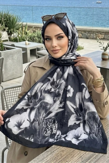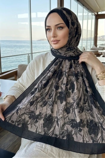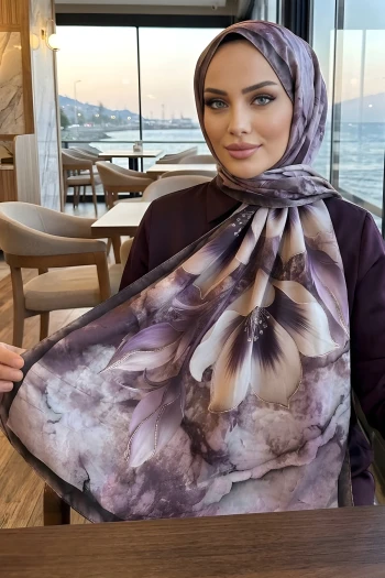 Koyuv Vizon İpekhan Desenli Kraş Şal