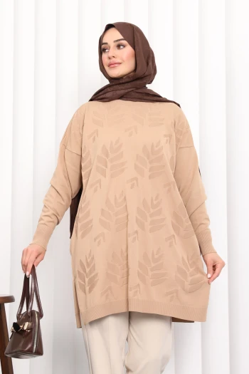 Kahverengi Kol Fermuarlı Soğuk İplik Triko Tunik