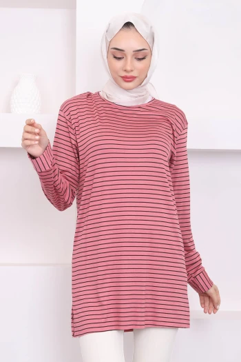 Vizon Bisiklet Yaka Merserize Salaş Triko Tunik