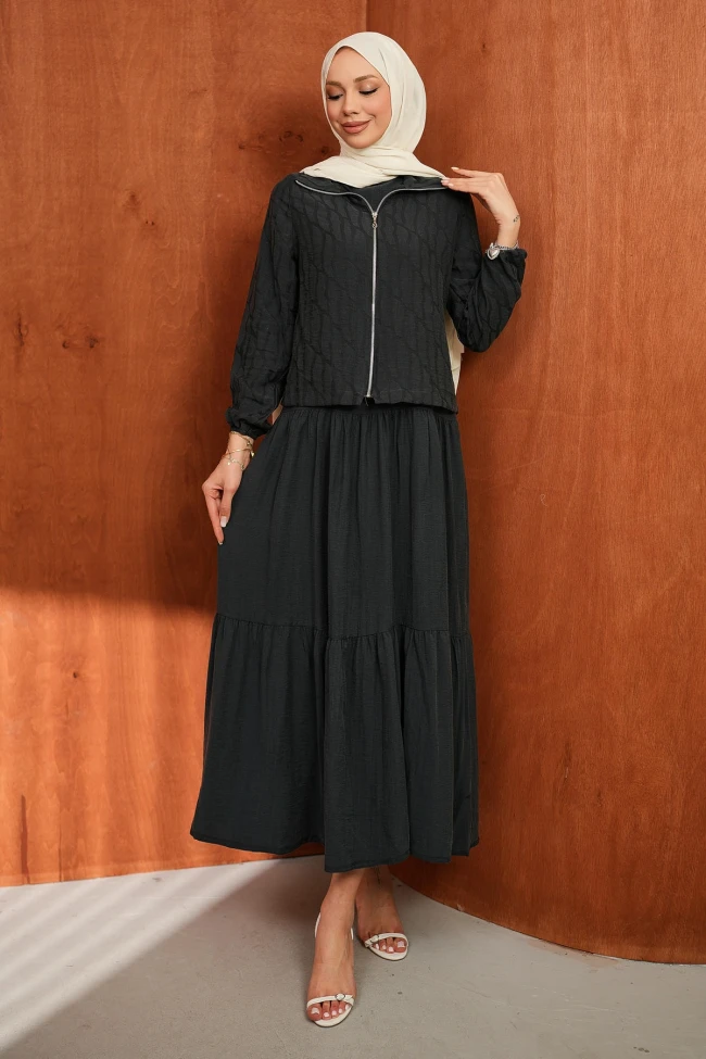 Mürdüm Fermuarlı Ceket Eteği Katlı Jile Takım Kahverengi Fermuarlı Ceket Eteği Katlı Jile Takım Lacivert Fermuarlı Ceket Eteği Katlı Jile Takım Haki Fermuarlı Ceket Eteği Katlı Jile Takım