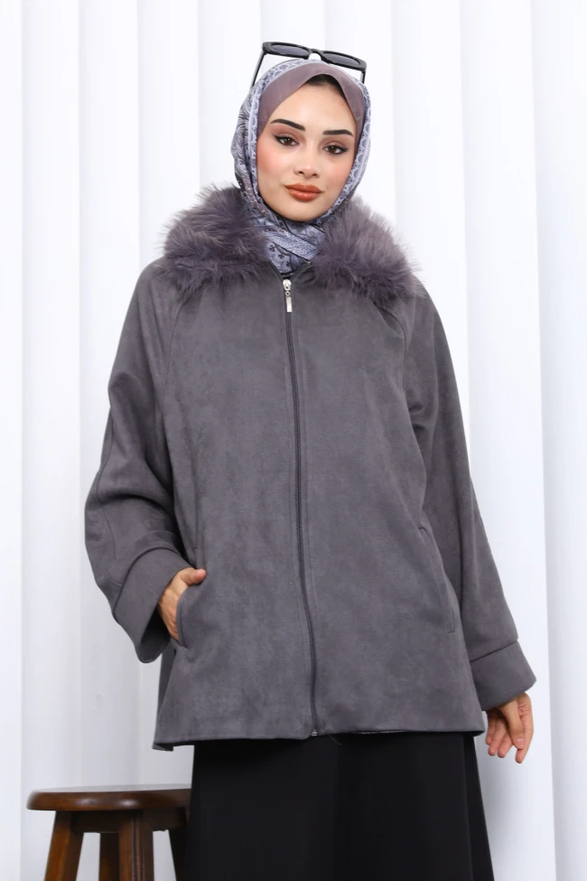 * Ürün Detay : Ürünümüz Süet Kumaştan Üretilmiştir. Ön kısmı fermuarlı ve yaka kısmı kürk detaylıdır.