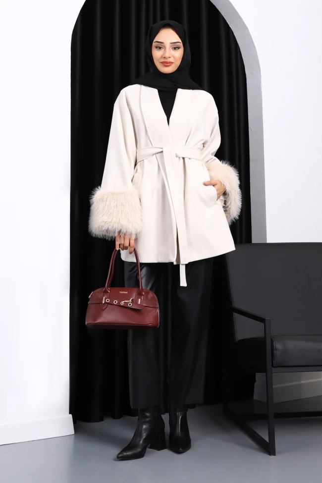* Ürün Detay : Ürünümüz Kaşe  Kumaştan Üretilmiştir. Bel kısmı kuşaklı olup, yan kısımlarında cepler bulunmaktadır. Kol uç kısımlarında yer alan kürk detayı ürünümüze oldukça modern ve şık bir görünüm katmıştır.