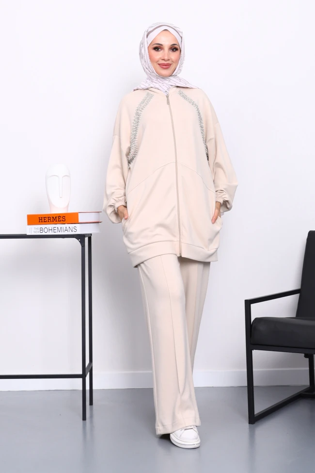 * Ürün Detay : Ürünümüz Modal kumaştan üretilmiştir. Tunik ile  Pantolon 2'lü takım olarak tasarlanmıştır. Tunik ön kısmı fermuarlı ve omuz kısımları taş işlemelidir. Pantolon bel kısmı lastiklidir. Tunik cep kısımları bulunmaktadır.