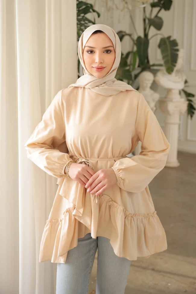 Lacivert Eteği Katlı Fırfırlı Tunik Somon Eteği Katlı Fırfırlı Tunik Gül Kurusu Eteği Katlı Fırfırlı Tunik Pudra Eteği Katlı Fırfırlı Tunik Ekru Eteği Katlı Fırfırlı Tunik Bebe Mavi Eteği Katlı Fırfırlı Tunik