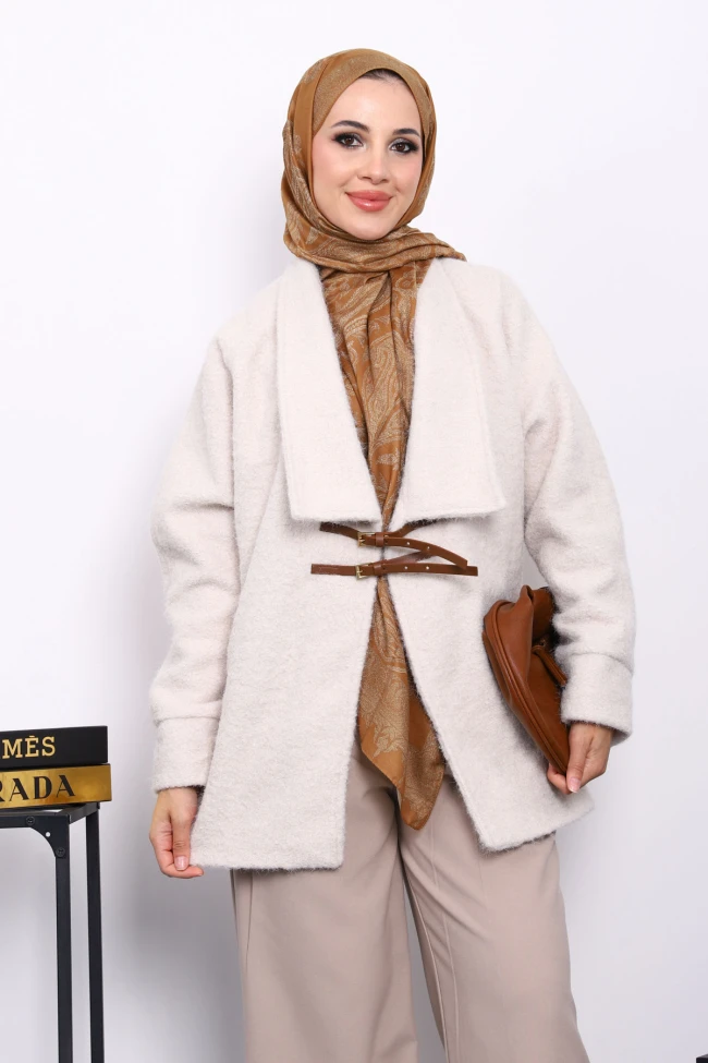 * Ürün Detay : Ürünümüz Kaşe Kumaştan Üretilmiştir. Göğüs kısmında kemer aksesuarları yer almaktadır.