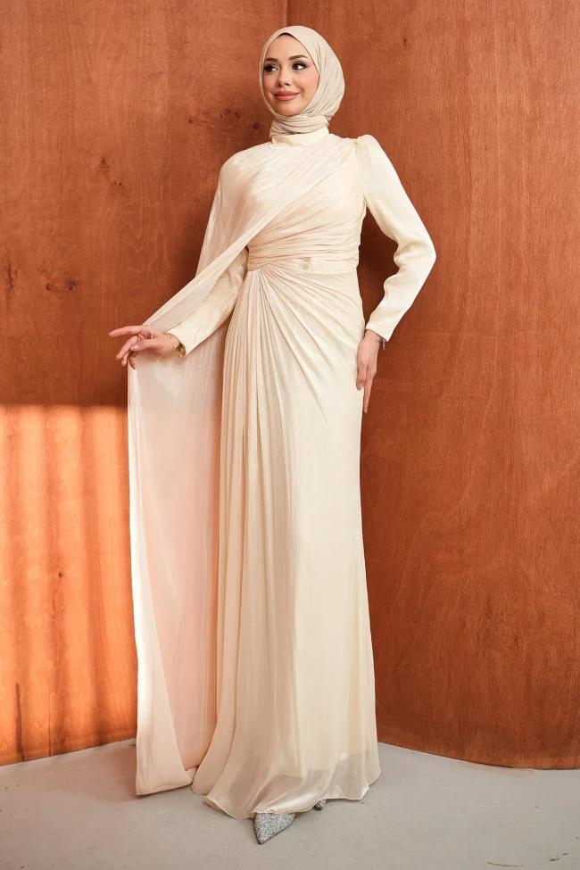 Taş Önü Büzgülü Abiye Haki Önü Büzgülü Abiye Kahverengi Önü Drapeli Şifon Abiye Gül Kurusu Önü Büzgülü Abiye