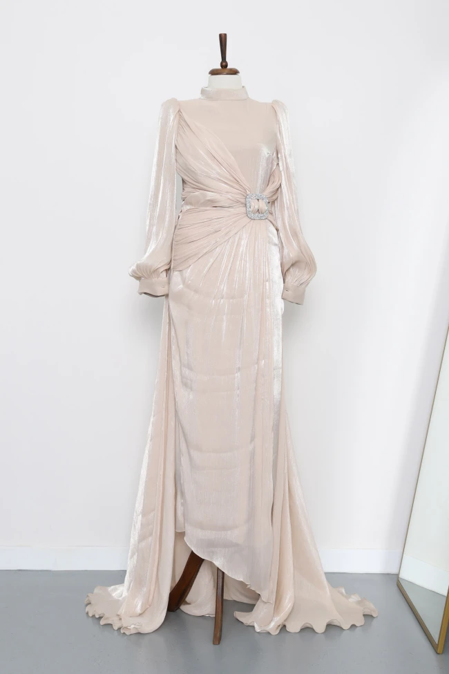 Lacivert Önü Taş Detaylı Abiye Kahverengi Önü Taş Detaylı Abiye