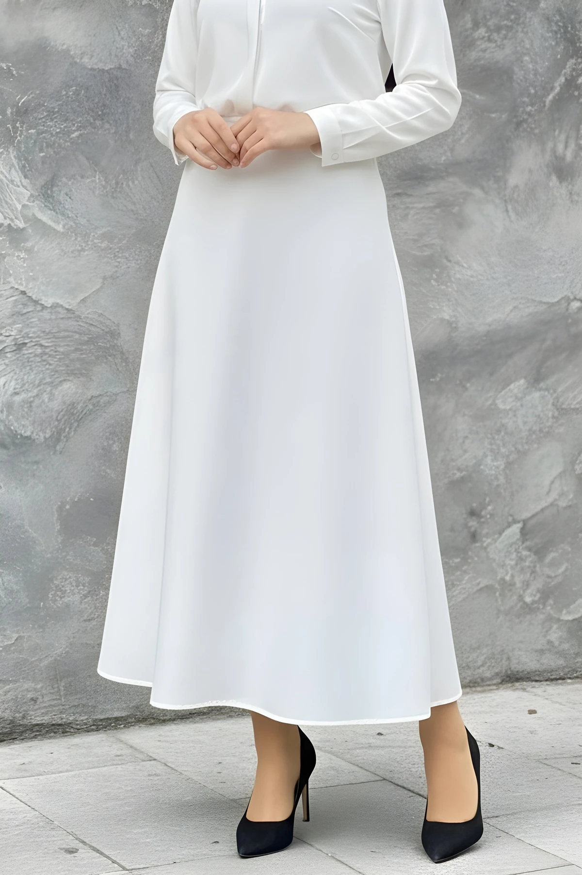 * Ürün Detay : Etek, klasik ve zamansız bir parça olarak öne çıkıyor.Belden aşağıya doğru hafifçe genişleyen bu kesim, vücut hatlarını dengeler ve son derece zarif bir silüet oluşturur.Minimalist kapsül gardırop oluşturmak isteyenler için anahtar parçalardan biridir.