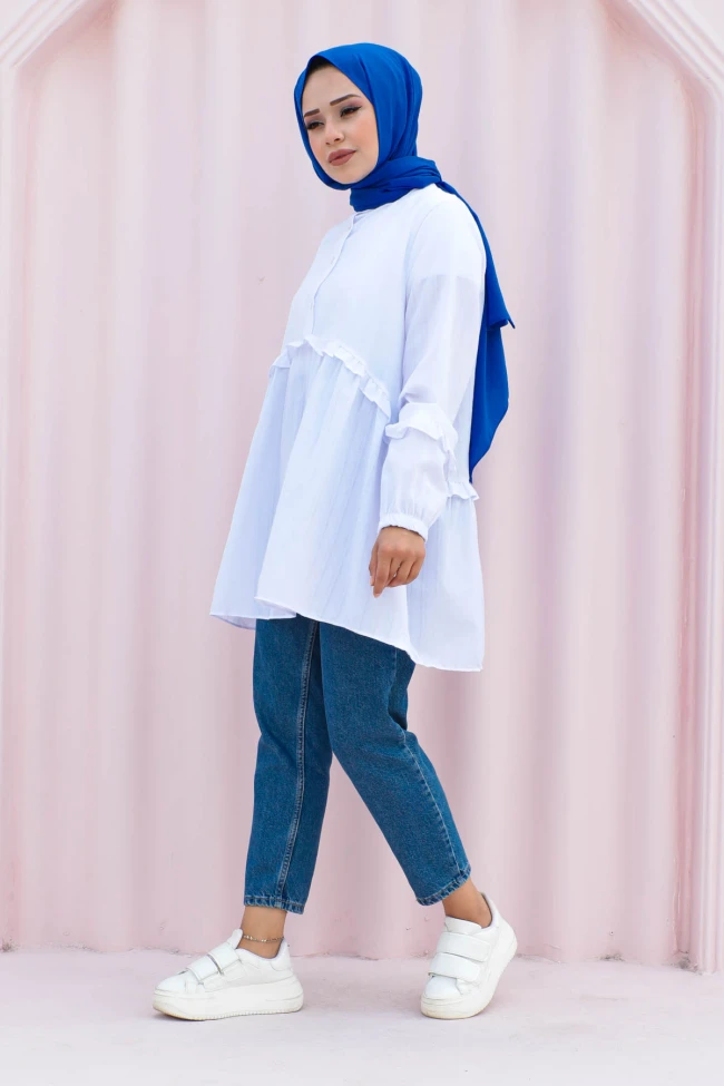 * Ürün Detay : Yeni sezon tunik modelimiz ile siz değerli müşterilerimize merhaba. Ürünümüz yeni sezona uygun terikoton kumaştan üretilmiştir. Göğüs altına kadar düğmelidir. Belden uç kısımlara doğru daha rahat bir yapıya sahiptir. Tuniğimiz hakim yakadır. Fırfır detayları mevcuttur. Kol manşet kısımları lastiklidir. Geniş renk seçeneğinin mevcut olduğu tuniğimiz ile kombin kolaylığı yaşayacaksınız.