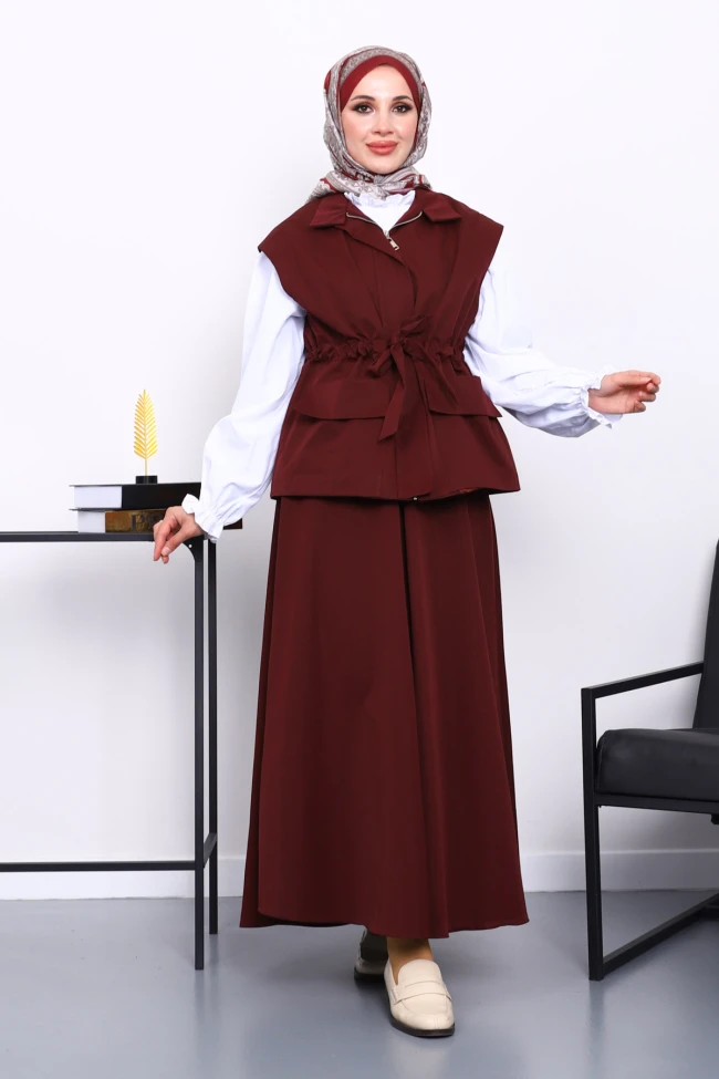 * Ürün Detay : Ürünümüz Bondit Kumaştan Üretilmiştir. Yelek ile Etek ikili takım şeklindedir. Yelek ön kısmı fermuarlı ve bel bağlamalıdır. Etek bel kısmı lastiklidir.