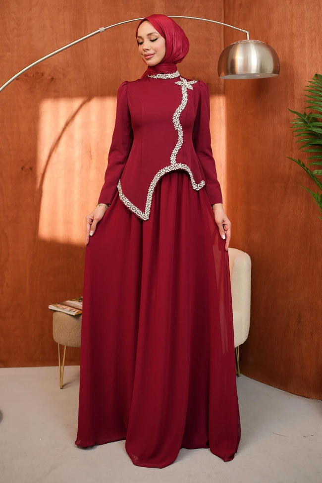 * Ürün Detay : Abiye Takımı, zarafeti ve modern kesimi bir araya getiren oldukça asil bir seçim.Bluzun ön kısmındaki kavisli, asimetrik kesim, takımı sıradan bir abiyeden ayırıp modern bir abiye havası katmış.Yaka kısmından başlayıp gövde boyunca kıvrılarak işlemeler, kıyafete ihtiyaç duyduğu ışıltıyı veriyor. Bu detay, takıyı minimize etme lüksü sağlar.Bluzun bele tam oturan yapısı , vücut hatlarını dengeli ve ince gösteren bir silüet oluşturuyor.