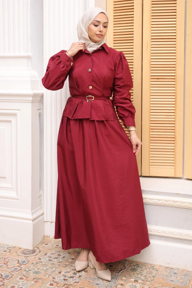 * Ürün Detay : Zengin dokusu ve klasik silüetiyle dikkat çeken bu takım, vintage esintileri modern çizgilerle buluşturuyor.Şıklığı tamamlayan gold detaylı zarif düğmeler.Bel hattını belirginleştiren, gold tokalı şık ince kemer aksesuarı.Etek bel lastikli ve ceplidir.
