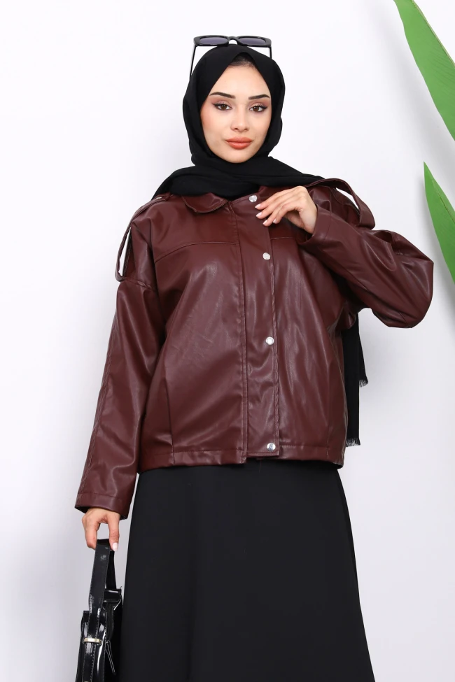 Taba Omuz Apoletli Deri Ceket Kahverengi Omuz Apoletli Deri Ceket Siyah Omuz Apoletli Deri Ceket