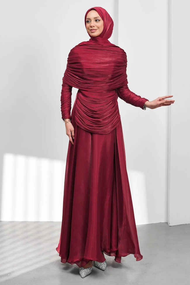 * Ürün Detay : “Gecenin yıldızı olmaya hazır mısınız? ”Bu büyüleyici abiye, asalet ve zarafeti tek bir tasarımda buluşturuyor.Vücut hatlarını zarifçe gizleyen sihirli dokunuş.Stratejik olarak yerleştirilen drapeler, size hem konforlu bir hareket alanı sunar hem de fit bir görünüm kazandırır.Belden aşağıya doğru genişleyen akışkan etek yapısı, her adımda uçuşan, masalsı bir silüet oluşturur.