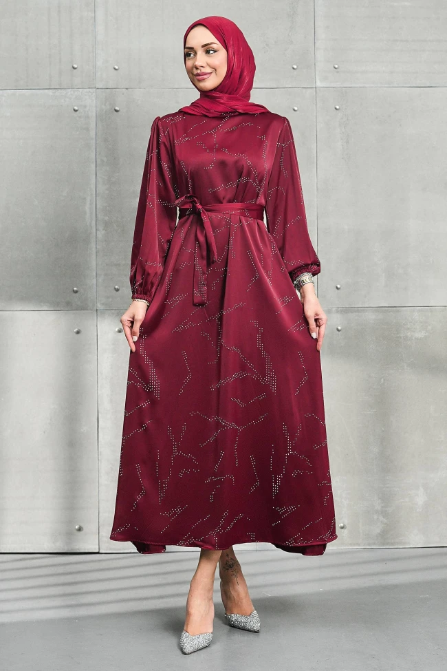 * Ürün Detay : Gecenin yıldızı siz olun! Renklerin asaletini modern ışıltılarla buluşturan bu özel tasarım abiye,özel davetlerinizde konforlu şıklığın anahtarı olacak. Bel vurgusu ve dökümlü kesimiyle zarafeti yeniden tanımlayın!Elbisenin üzerindeki serpme taş detayları, gece boyunca ışığı yakalayarak dinamik bir görünüm sunar.Belden bağlama detayı, her vücut tipine göre ayarlanabilir bir form sağlarken; dökümlü etek yapısı tesettür giyimde aranan konforu ve gizliliği şık bir şekilde sunar.Hafif balon kol yapısı ve lastikli manşetler, elbiseye hem romantik bir hava katar hem de kullanım kolaylığı sağlar.