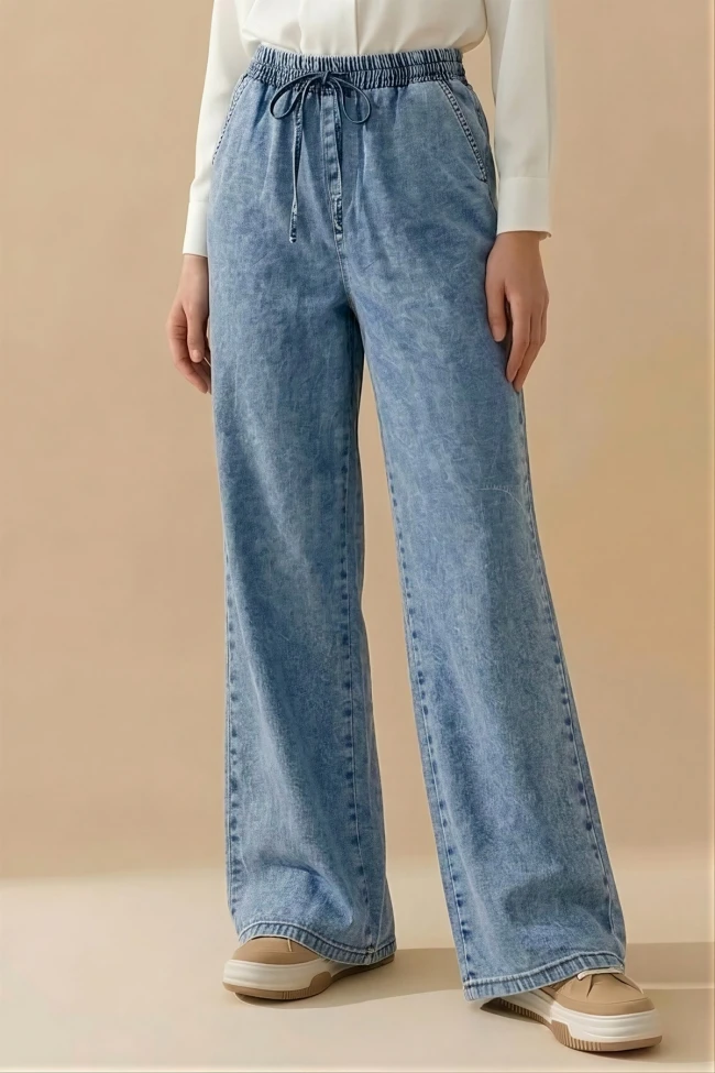 * Ürün Detay : Modern ve günlük bir tarz oluşturmak isteyenler için oldukça kullanışlı görünen kot pantolon modelimiz sizlerle.Yüksek beldir.Bel lastiklidir.Bağlama detaylıdır.Arkada cep yoktur.