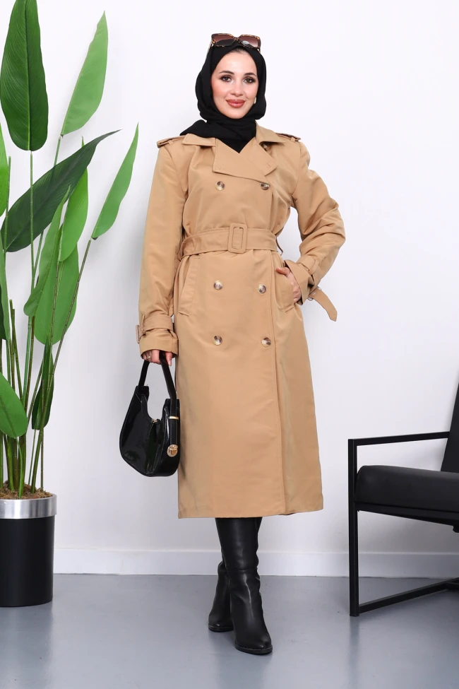 Siyah Kruvaze Yaka Astarlı Trençkot Haki Kruvaze Yaka Astarlı Trençkot