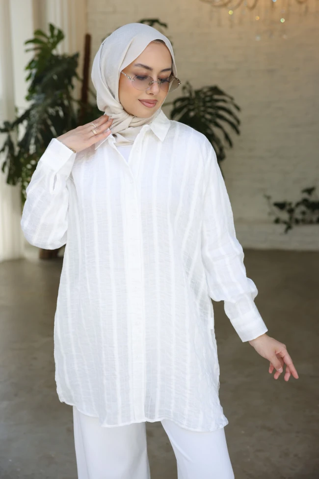 * Ürün Detay : Gömlek doğal dokusu ve sakin rengiyle hem ofis şıklığında hem de günlük kombinlerinizde favori parçanız olacak. Minimalist tasarımı, modern detaylarla birleşerek zahmetsiz bir zarafet sunuyor.Rahat ve dökümlü oversize kalıp, gün boyu konforlu bir kullanım sağlar.