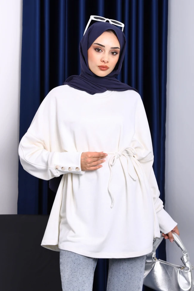 * Ürün Detay : Ürünümüz Modal Kumaştan Üretilmiştir. Bel kısmı kuşaklı ve kol kısımlarında düğme detayı yer almaktadır.