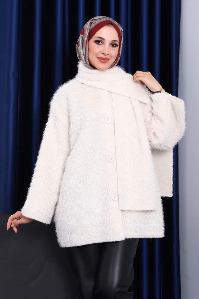 * Ürün Detay : Ürünümüz yeni sezona uygun Angora Yumoş  kumaştan üretilmiştir.  Ön kısmı düğmeli olup yaka kısmı atkı şeklindedir.