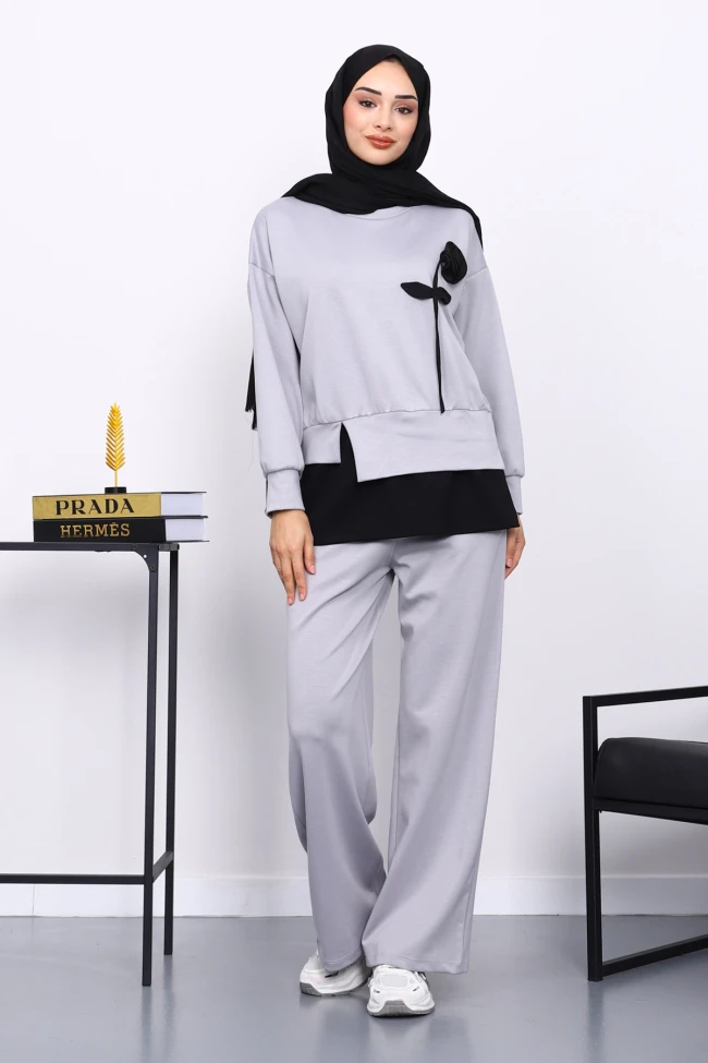* Ürün Detay : Ürünümüz Modal Kumaştan Üretilmiştir. Tunik ile Pantolon ikili takım şeklindedir. Tunik göğüs kısmında gül detayı yer almaktadır. Etek uç kısmı ayrı bir parçadan oluşur. Pantolon bel kısmı lastiklidir.