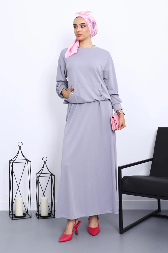 * Ürün Detay : Ürünümüz Pamuklu Modal Kumaştan Üretilmiştir. Bluz ile Etek ikili takım şeklindedir. Bluz ön ceplidir. Etek bel kısmı lastiklidir.