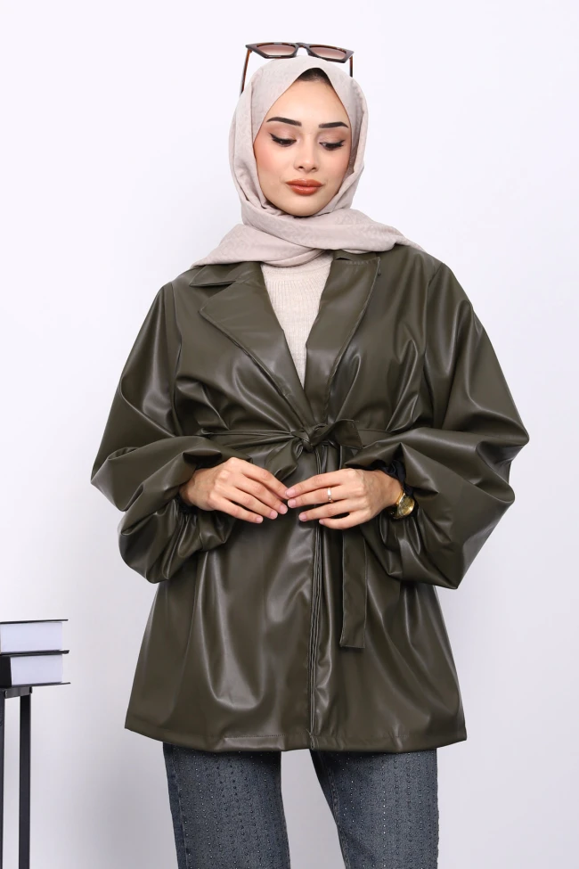 Taba Balon Kol Kuşaklı Deri Ceket Lacivert Balon Kol Kuşaklı Deri Ceket Siyah Balon Kol Kuşaklı Deri Ceket Bej Balon Kol Kuşaklı Deri Ceket