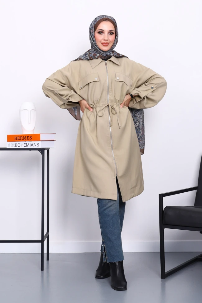 * Ürün Detay : Ürünümüz Dokuma Pamuklu Modal kumaştan üretilmiştir. Bel kısmı kulisan kemer detaylı olup, ön kısmı fermuarlıdır. Göğüs kısmı ceplidir.