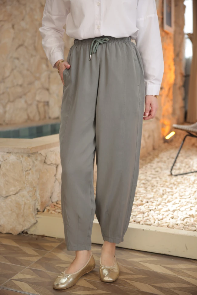 * Ürün Detay : Pantolon, hem renk hem de kesim olarak rahatlığı ve sofistike bir duruşu bir araya getiren çok yönlü bir parça.Hem konforlu hem de stil sahibi bu pantolon, bel büzgüsü ve şalvar kesimi detayıyla hem ofis şıklığında hem de hafta sonu rahatlığında mükemmel bir seçenek. Renk ve kesimiyle gardırobun joker parçası olmaya aday.