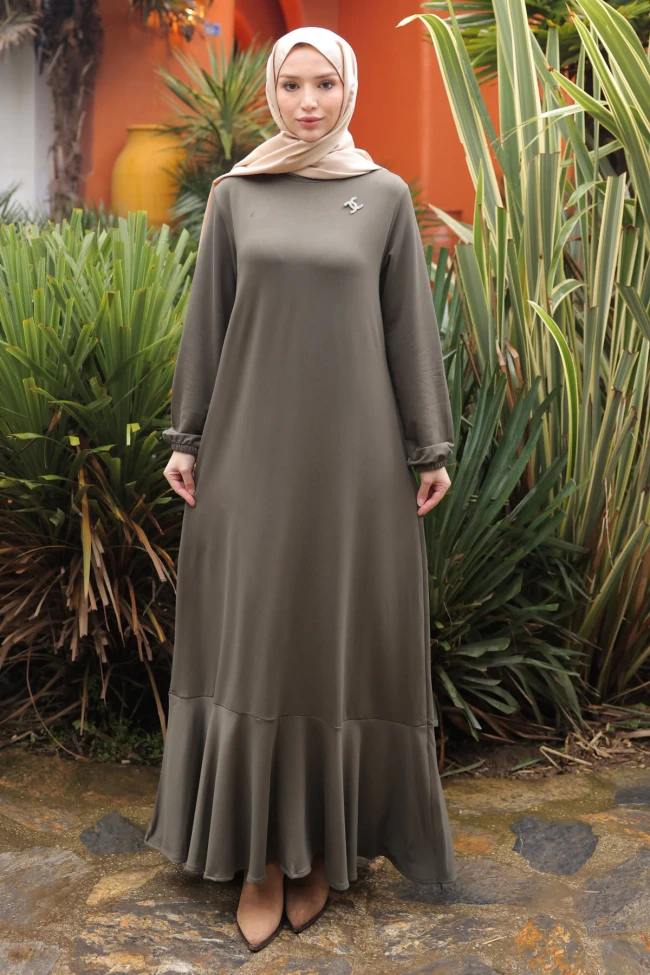 Koyu Gri Eteği Katlı Kol Lastikli Modal Elbise Siyah Eteği Katlı Kol Lastikli Modal Elbise Kahverengi Eteği Katlı Kol Lastikli Modal Elbise Bej Eteği Katlı Kol Lastikli Modal Elbise