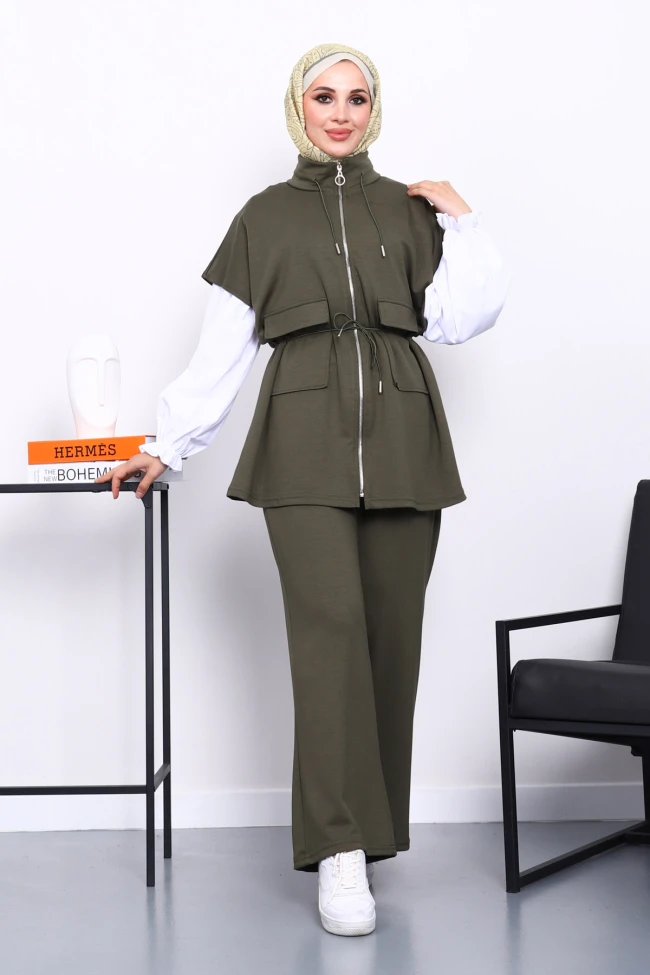* Ürün Detay : Ürünümüz Modal Kumaştan Üretilmiştir. Yelek ile Pantolon ikili takım şeklindedir. Yelek ön kısmı fermuarlı ve kuşak detaylıdır. Pantolon bel kısmı lastiklidir.