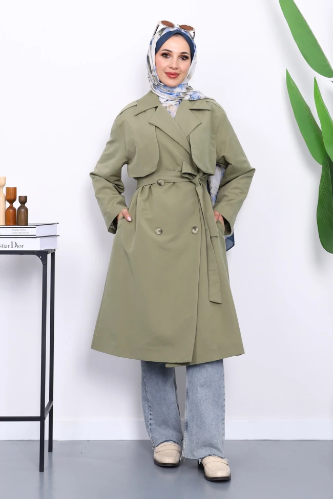 Taş Kravuze Yaka Kuşaklı  Cepli Trençkot Lacivert Kravuze Yaka Kuşaklı  Cepli Trençkot Bisküvi Kravuze Yaka Kuşaklı  Cepli Trençkot