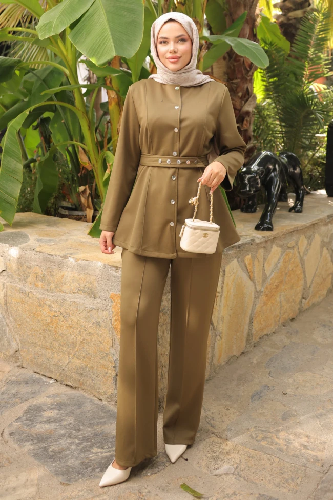 * Ürün Detay : Ürünümüz yeni sezona uygun Scuba kumaştan üretilmiştir.  Ceket ile Pantolon ikili takım şeklindedir. Ceket ön kısmı çıtçıt düğmeli olup bel kısmı kemerlidir. Pantolon bel kısmı lastiklidir.