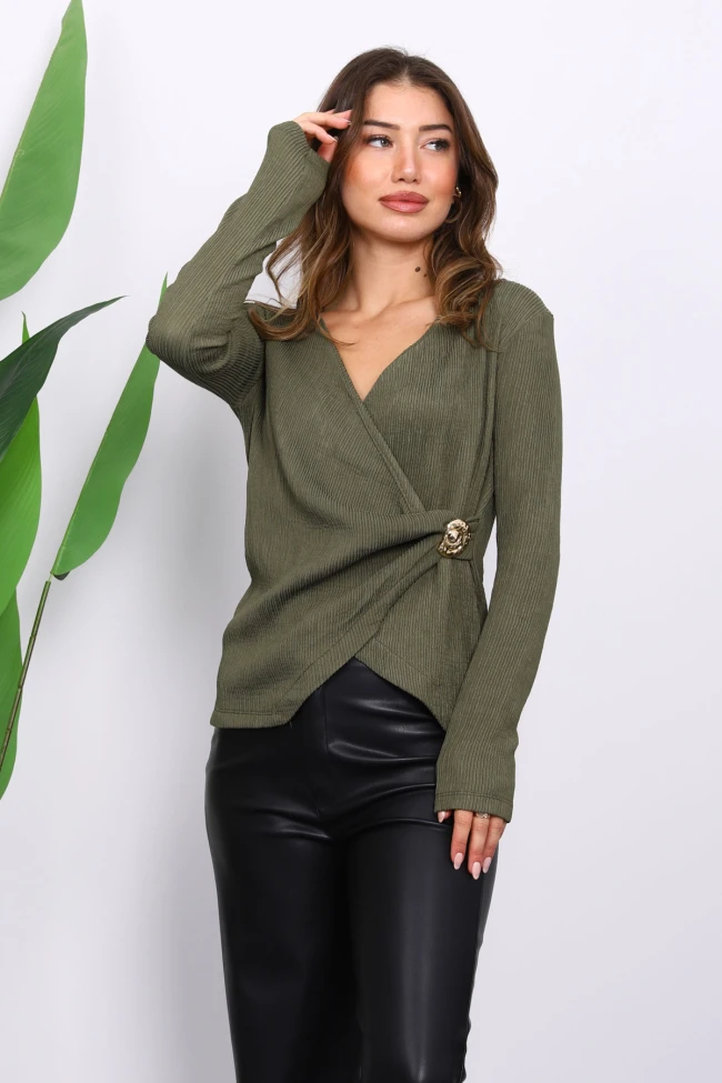 Taş Toka Detaylı Kruvaze Yaka Fitilli Bluz Lacivert Toka Detaylı Kruvaze Yaka Fitilli Bluz Siyah Toka Detaylı Kruvaze Yaka Fitilli Bluz Kahverengi Toka Detaylı Kruvaze Yaka Fitilli Bluz Bordo Toka Detaylı Kruvaze Yaka Fitilli Bluz