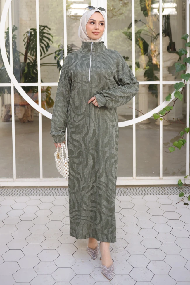 * Ürün Detay : Elbise, hem konforu hem de sofistike detayları bir araya getiren modern bir günlük şık tasarımı temsil ediyor. Renklerin en güzel tonlarındaki bu parça, özellikle dokusu ve kesimiyle dikkat çekici.Elbisenin üzerindeki kendinden kabartmalı dalga desenleri ve fitilli doku, düz bir elbiseye göre çok daha zengin ve derinlikli bir görüntü sunuyor.