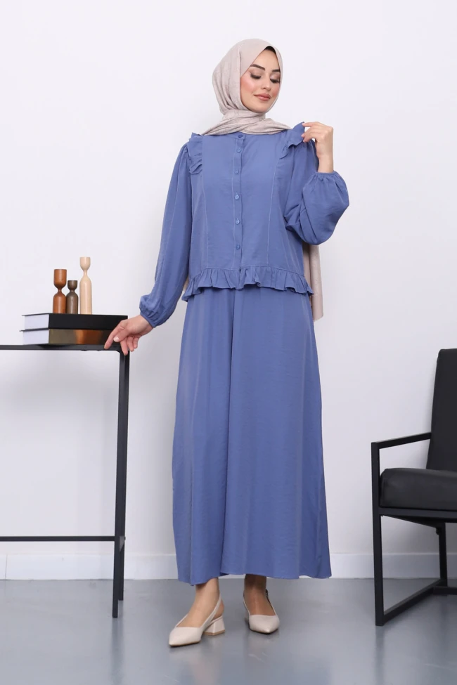 * Ürün Detay : Yeni sezona uygun Modal Keten kumaştan üretilmiştir. Gömlek ile Etek ikili takım şeklindedir. Gömlek ön kısmı düğmelidir. Etek bel kısmı lastiklidir.