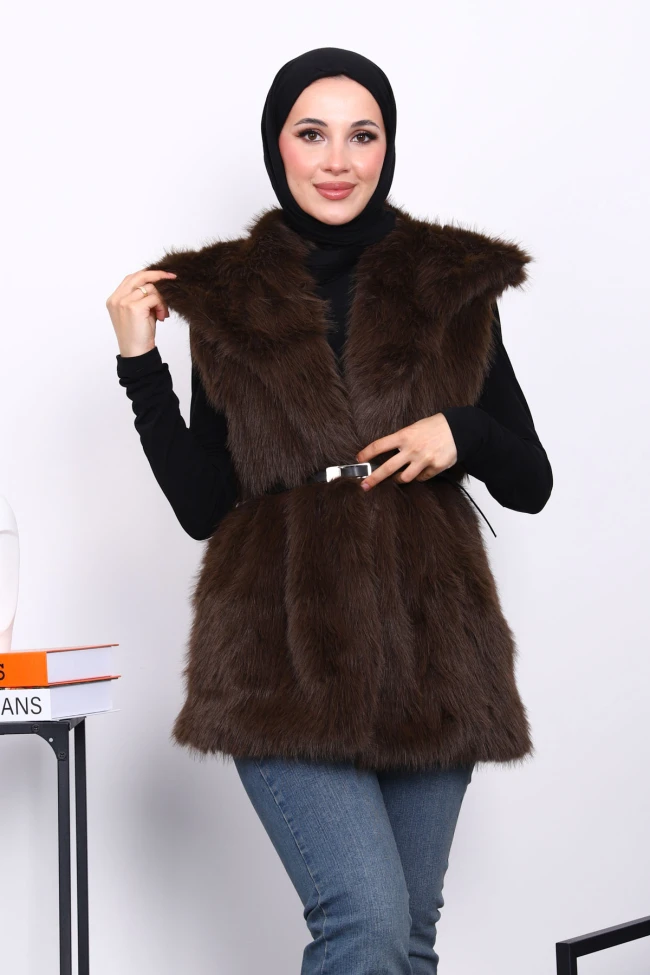 Taş Astarlı Kemerli Kürk Yelek Siyah Astarlı Kemerli Kürk Yelek Ekru Astarlı Kemerli Kürk Yelek Füme Astarlı Kemerli Kürk Yelek Bisküvi Astarlı Kemerli Kürk Yelek