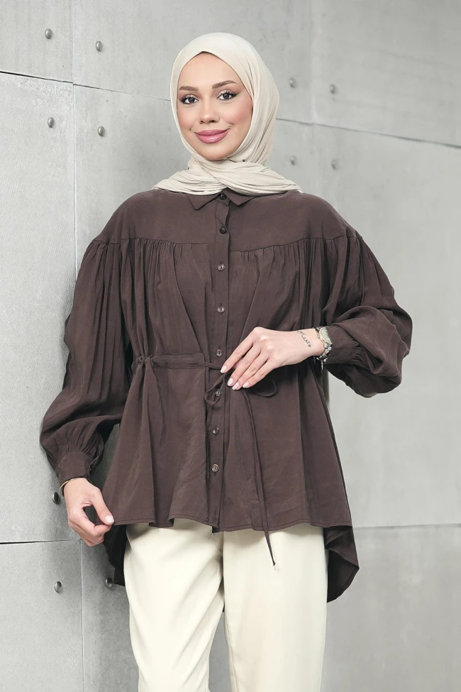 * Ürün Detay :Tunik, özellikle ilkbahar ve yaz ayları için hem ferah hem de stil sahibi bir seçenek sunuyor.Tunik, asimetrik bir kesime sahip. Bu detay, hem modern bir hava katıyor hem de ekstra kapatıcılık sağlıyor.Göğüs altındaki büzgü detayları ve beldeki ince bağcık, tuniğin formunu kişiselleştirmene olanak tanıyor.Balon kol yapısı ve manşetler, parçaya feminen ve hareketli bir dokunuş eklemiş.