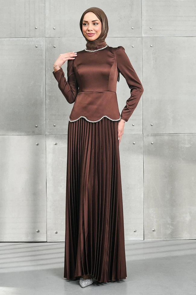 * Ürün Detay : Abiye, modern ve klasik detayları birleştiren oldukça şık bir tesettür abiye modeli.Beli oturan ve etek ucu dalgalı formunda biten üst parça, vücut hatlarını zarif bir şekilde dengeliyor. Omuzlardaki hafif kabarıklık ise duruşu daha dik ve güçlü kılmış.Piliseli maksi boy etek, hem hareket kabiliyetini artırıyor hem de tasarıma nostaljik bir dokunuş katıyor.
