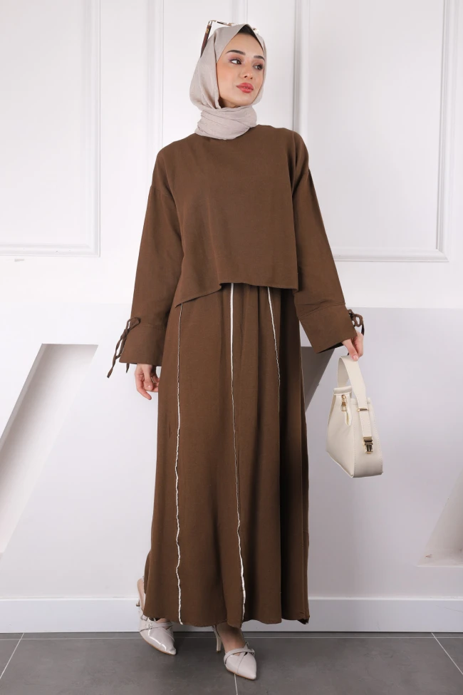 * Ürün Detay : Ürünümüz Keten Kumaştan Üretilmiştir. Bluz ile etek ikili takım şeklindedir. Etek bel kısmı lastik detaylıdır. Bluz kol kısmı bağlama detaylıdır. Etek bel kısmı lastiklidir.