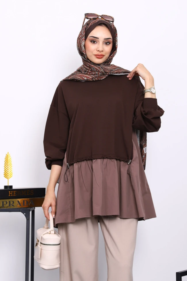 Ekru Büzgü Detaylı Garnili Tunik Siyah Büzgü Detaylı Garnili Tunik