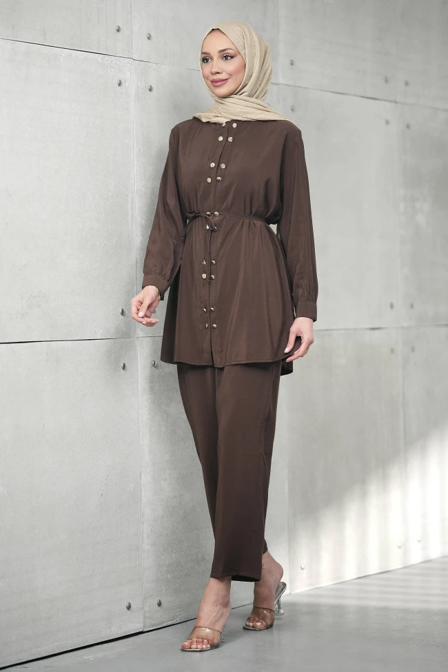 Vizon Düğme Detaylı Tunik Pantolonlu Takım Siyah Düğme Detaylı Tunik Pantolonlu Takım Lacivert Düğme Detaylı Tunik Pantolonlu Takım Haki Düğme Detaylı Tunik Pantolonlu Takım