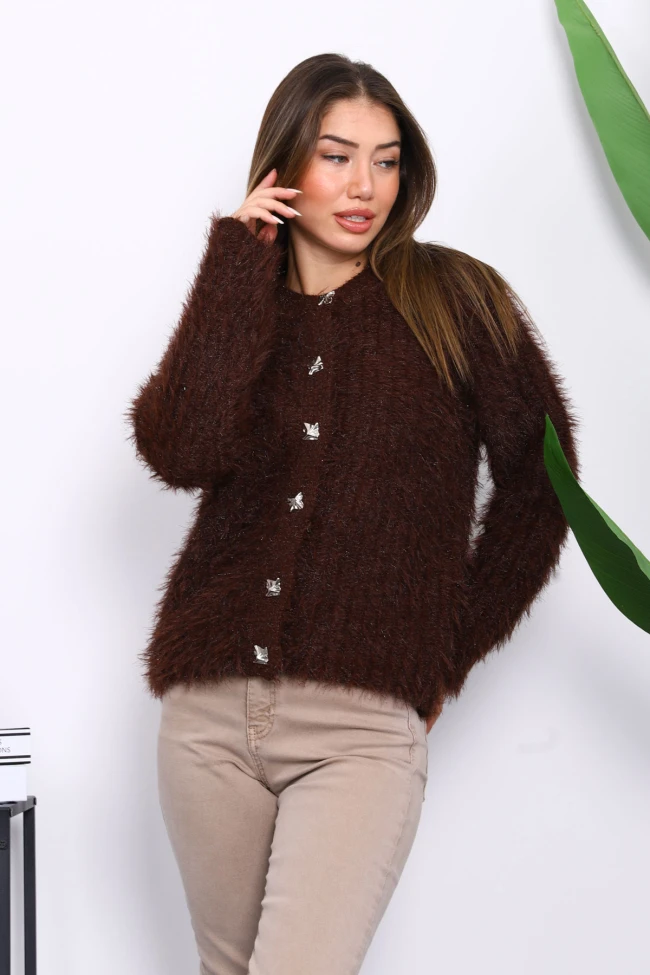 Siyah Düğmeli Simli Angora Yumoş Triko Hırka Vizon Düğmeli Simli Angora Yumoş Triko Hırka Bordo Düğmeli Simli Angora Yumoş Triko Hırka Krem Düğmeli Simli Angora Yumoş Triko Hırka