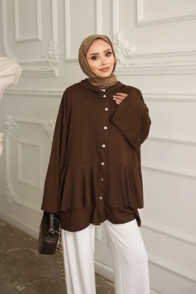 * Ürün Detay : Tunik, hem konforu hem de feminen detayları bir araya getiren modern-romantik bir tasarıma sahip.Bu özel tasarım tunik, günlük giyimde şıklığından ödün vermeden rahat etmek isteyen kadınlar için tasarlandı. Yumuşak dokusu ve özgün kesimiyle gardırobunuzun en sevilen parçalarından biri olmaya aday.Gövdenin alt kısmında yer alan zarif volan detayı, tasarıma hareketli ve feminen bir hava katıyor.Geniş ve dökümlü oversize kesimi sayesinde gün boyu hareket özgürlüğü sunar. Düşük omuz yapısı, modern ve eforsuz bir silüet oluşturur.Ön kısmında boydan boya yer alan metalik çıtçıtlar hem kullanım kolaylığı sağlar hem de tasarıma ışıltılı bir detay katar.