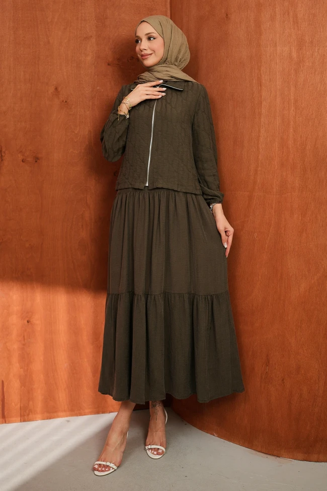 Mürdüm Fermuarlı Ceket Eteği Katlı Jile Takım Lacivert Fermuarlı Ceket Eteği Katlı Jile Takım Haki Fermuarlı Ceket Eteği Katlı Jile Takım Antrasit Fermuarlı Ceket Eteği Katlı Jile Takım