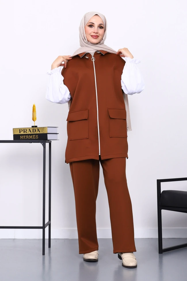 * Ürün Detay : Ürünümüz Scuba kumaştan üretilmiştir. Yelek ile Pantolon ikili takım şeklindedir. Yelek ön kısmı fermuarlı ve cep detaylıdır. Pantolon bel kısmı lastiklidir.